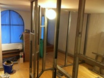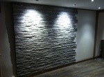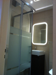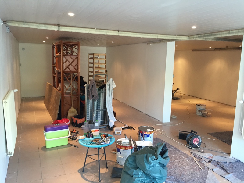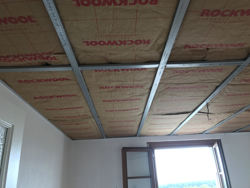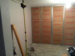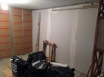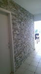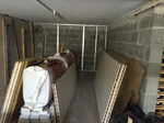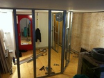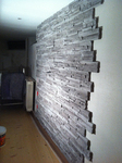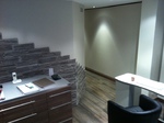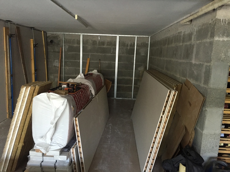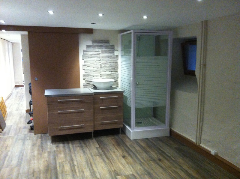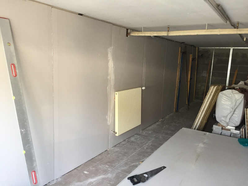 commercial, réalisation de cloisons sur rail métalliques, pose portes coulissantes, mur en briquettes de parement, agencement mobilier salle de bain, isolation des murs en laine de roche