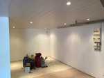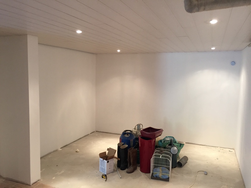 enduit et peinture, création d'un faux plafond en lambris avec installation de spots éclairant.