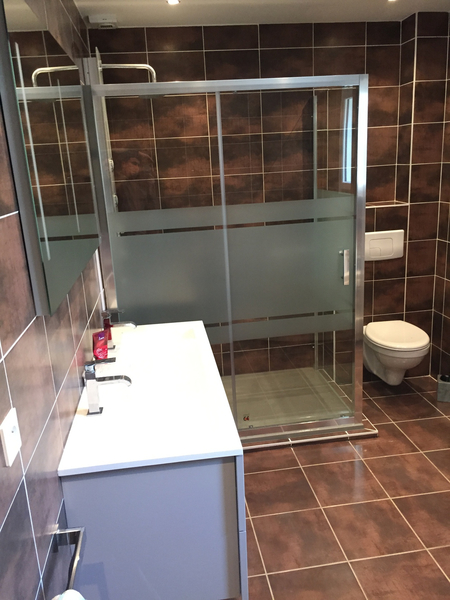 clipsable, habillage escalier en pvc, rénovation de salles de bain, installation douche et receveur en résine minérale, pose carrelage et faïence mural et wc suspendu moderne. Rénovation d'un local